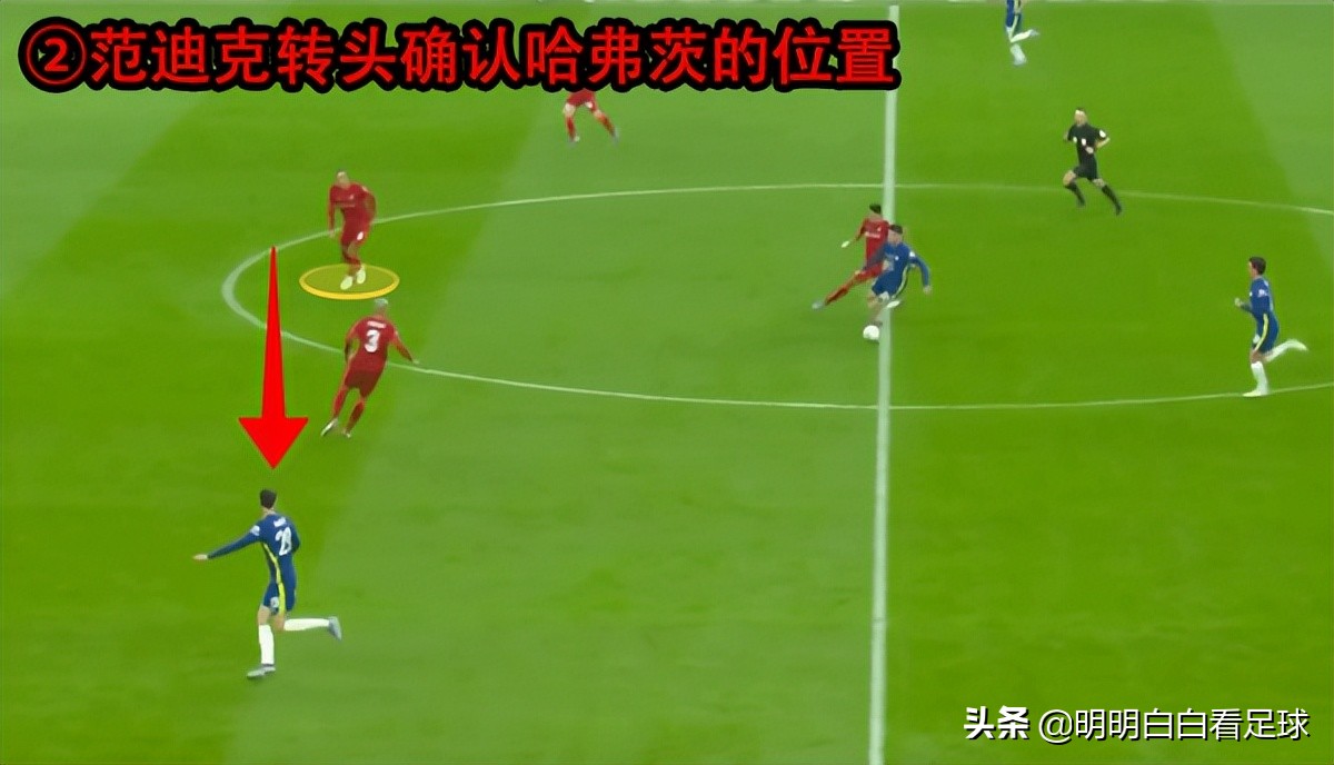 Anh quay đầu lại, xác định vị trí tiền đạo Chelsea Havertz.