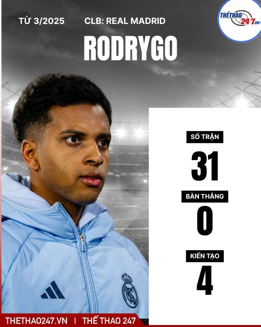 Kể từ pha lập công vào lưới Atletico Madrid hồi tháng 3, Rodrygo dần đánh mất bản năng săn bàn. Dù vẫn được Xabi Alonso trao cơ hội, phong độ của anh lao dốc không phanh, kéo theo những hoài nghi về tương lai tại Bernabeu. Từ khi Alonso tiếp quản ghế HLV, cầu thủ 24 tuổi đánh mất vị trí đá chính, thậm chí được xem là một trong những cái tên có thể bị bán để giúp Real Madrid tăng ngân sách chuyển nhượng vào năm 2026.