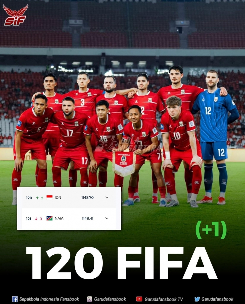 Indonesia tăng 1 bậc lên hạng 120 FIFA sau chiến thắng 4-0 trước Saint Kitts & Nevis, được cộng thêm 3,96 điểm và tiếp tục cải thiện vị thế trên bảng xếp hạng.