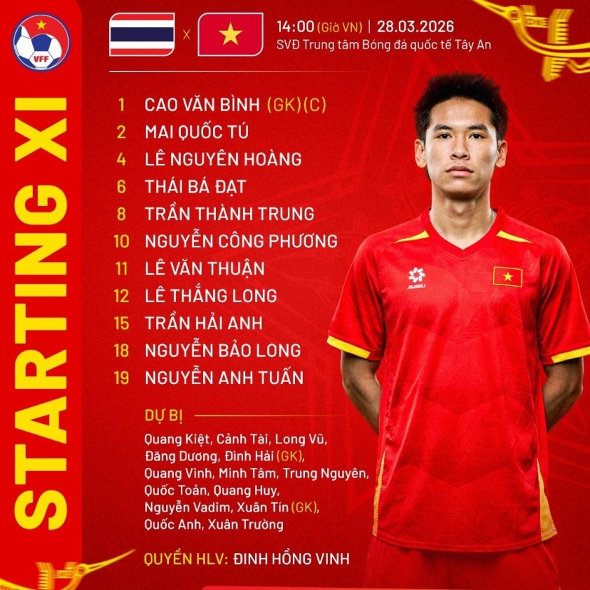 Điểm mạnh của U23 Việt Nam vẫn nằm ở khả năng phòng ngự chặt chẽ và chuyển trạng thái nhanh. Với bộ khung từng được thử lửa ở sân chơi châu lục, đội bóng áo đỏ có cơ sở để hướng tới một thế trận chặt chẽ trước đối thủ giàu kỹ thuật như U23 Thái Lan.Ở khu trung tuyến, Nguyễn Công Phương tiếp tục là cái tên được kỳ vọng sẽ giúp U23 Việt Nam kiểm soát nhịp độ và tạo ra sự khác biệt bằng những đường chuyền mở ra cơ hội.