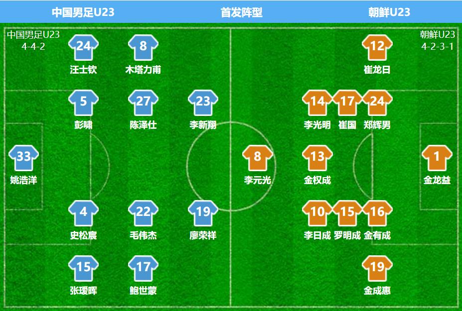 Phút 22, đội Triều Tiên phá vỡ thế bế tắc. Kim Sung Hyun chuyền dài từ trái đánh sau, Lee Il Sung sút góc nhỏ bị Yao Haoyang đẩy ra, Lee Kwang Myong theo kịp bắt cơ hội đá volley ghi bàn, U23 Trung Quốc thua 0-1. Khốn khó lại gặp mưa dầm, phút 34, hậu vệ Peng Xiao của đội tuyển bị chấn thương lưng trong tranh chấp, không thể tiếp tục, được He Yiran thay vào, sự ổn định hàng phòng ngự tiếp tục tổn hại. Toàn hiệp một, đội tuyển ở cả tỷ lệ kiểm soát bóng và số lần sút đều ở thế yếu, không tổ chức được tấn công hiệu quả.