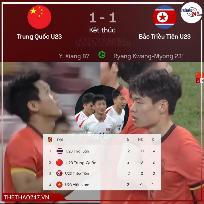 Cụ thể, U23 Thái Lan sau chiến thắng này đã có 4 điểm trong khi ở trận đấu còn lại ở lượt trận thứ 2, U23 Triều Tiên cầm hòa U23 Trung Quốc 1-1. Hiện tại 2 đội này cùng có 2 điểm trong khi U23 Việt Nam mới có 1 điểm. Lượt trận cuối U23 Thái Lan chạm trán U23 Triều Tiên còn U23 Việt Nam gặp chủ nhà Trung Quốc.