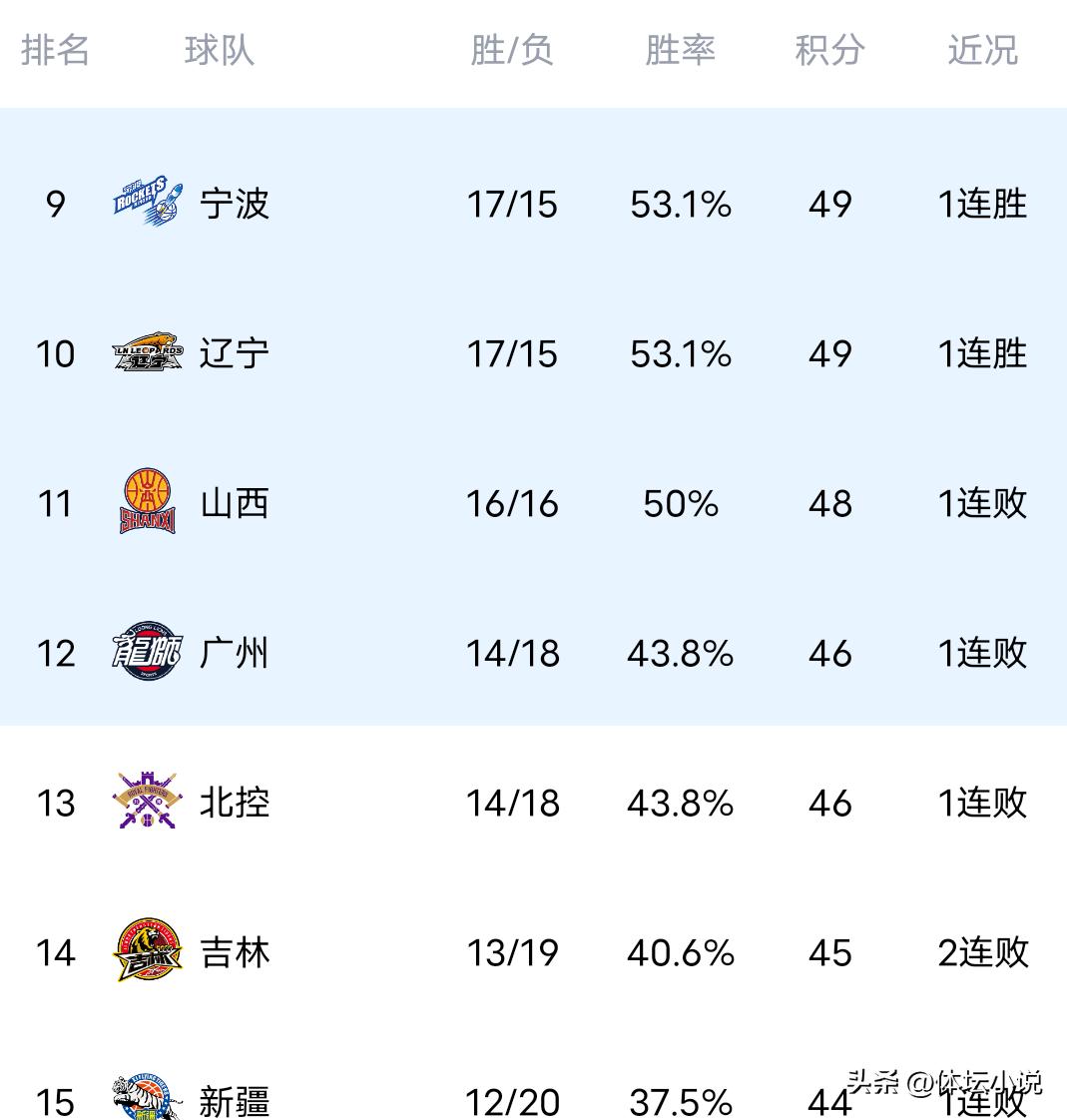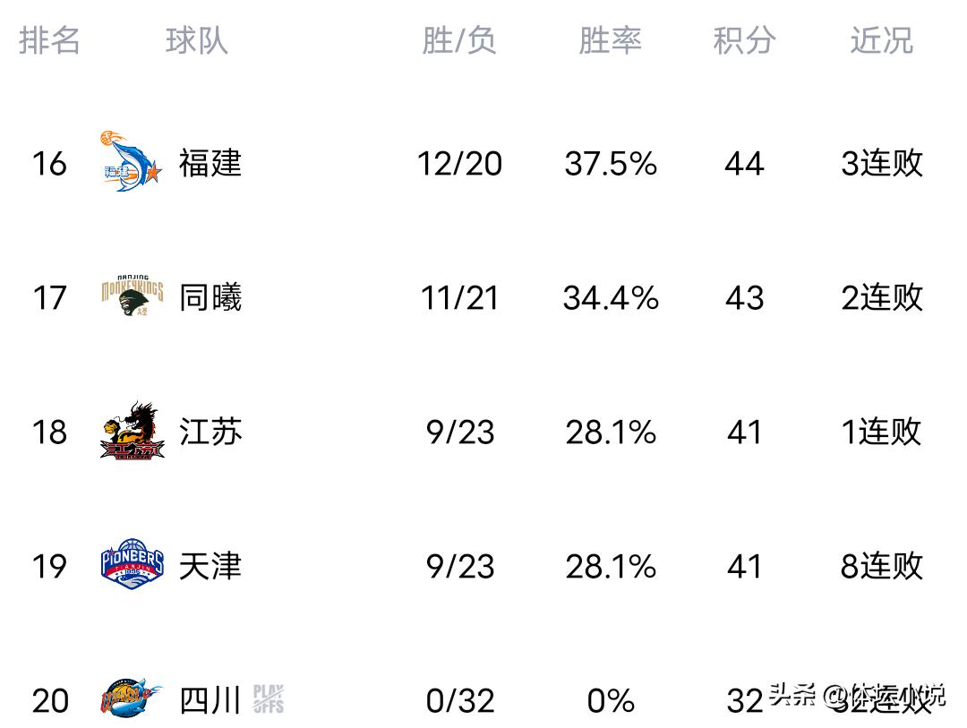 Ngày 31 tháng 3 theo giờ Bắc Kinh, giải đấu CBA tiếp tục diễn ra vào tối hôm trước. Trong những trận đấu được quan tâm nhất, Phúc Kiến thua 94-102 trước đại gia Liêu Ninh, Đồng Hy thua sát nút 88-90 trước đại gia Bắc Kinh, Thanh Đào tỏa sáng toàn diện đánh bại Bắc Khống 105-80, các cầu thủ ngoại của Sơn Đông bùng nổ đánh bại Thiên Tân 111-103, Chiết Giang dễ dàng thắng Quảng Châu 87-70, Tân Cương thua sát nút 70-73 trước đội bét bảng trước đây Ninh Ba, từ đó bảng xếp hạng hỗn loạn, Bắc Kinh với 3 trận thắng liên tiếp tiến vào top 3, Sơn Đông thắng trận lại tụt xuống vị trí thứ năm, Ninh Ba đứng thứ chín, Liêu Ninh đứng thứ mười!
