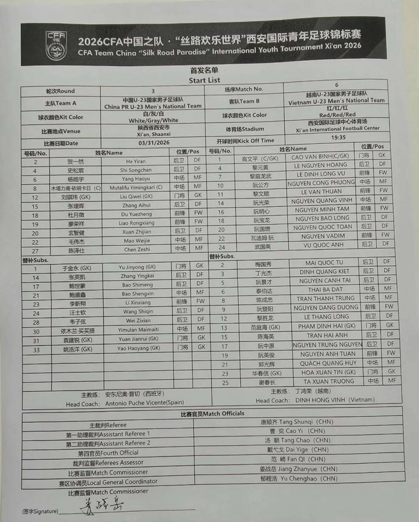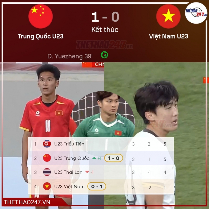 Khi thế trận đang diễn ra giằng co, bước ngoặt bất ngờ xảy ra ở phút 40. Tận dụng khoảnh khắc Văn Bình dâng cao, Du Yuezheng tung cú sút xa táo bạo, đưa bóng đi thẳng vào lưới, mở tỷ số cho đội chủ nhà. Bàn thua này khiến U23 Việt Nam rơi vào thế phải rượt đuổi trong phần còn lại của trận đấu.