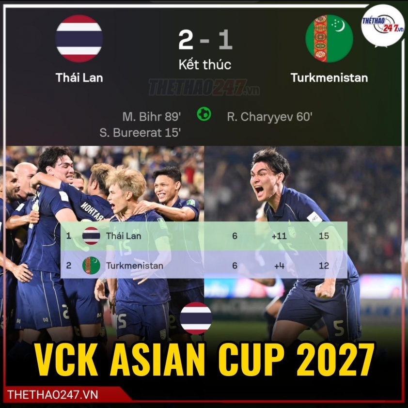 Chiến thắng của Thái Lan trước Turkmenistan đẩy ĐT Việt Nam vào nguy cơ rơi vào “bảng tử thần” Asian Cup 2027.