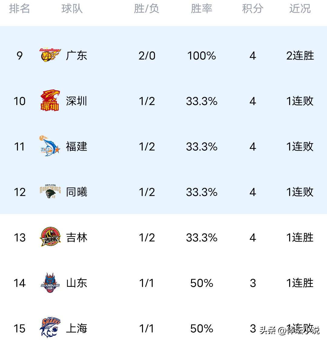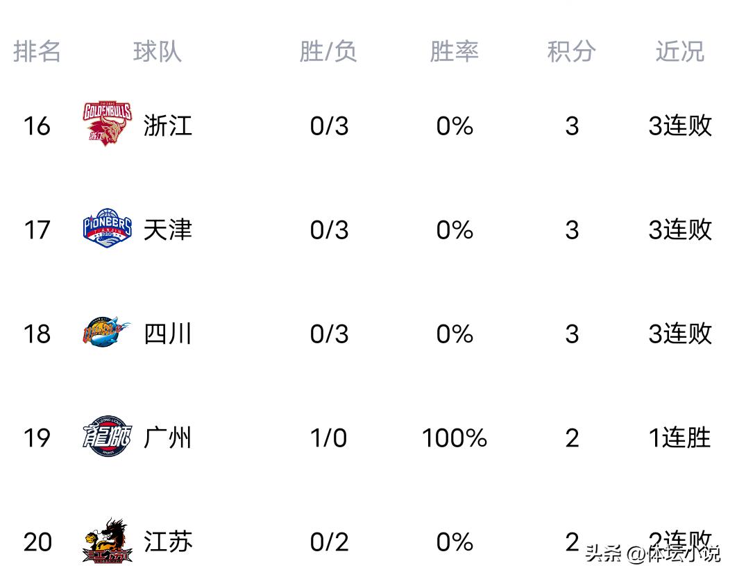 Vào ngày 19 tháng 12 theo giờ Bắc Kinh, vòng 3 của giải CBA chính thức bắt đầu. Trong những trận đấu mới kết thúc, đội yếu Ningbo bất ngờ lội ngược dòng với tỷ số 81-72 trước Thâm Quyến, Bắc Khống thua 95-105 trước đội mạnh Tân Cương, đội yếu Phúc Kiến thất bại nặng nề 80-98 trước đương kim vô địch Quảng Hạ, “sát thủ người khổng lồ” Cát Lâm nhẹ nhàng vượt qua Thiên Tân 90-80, đội ngựa ô Thanh Đảo thắng dễ Tống Tức 99-88 để có chuỗi 3 trận thắng liên tiếp, trận đấu mạnh mẽ Sơn Tây thắng 102-91 đẩy Chiết Giang vào chuỗi 3 trận thua liên tiếp, như vậy bảng xếp hạng mới nhất đã được cập nhật, Thanh Đảo đứng đầu, Tân Cương thứ tư, Quảng Hạ thứ năm, Sơn Tây thứ sáu, Ningbo thứ bảy, Chiết Giang thua 3 trận liên tiếp đứng thứ 16!